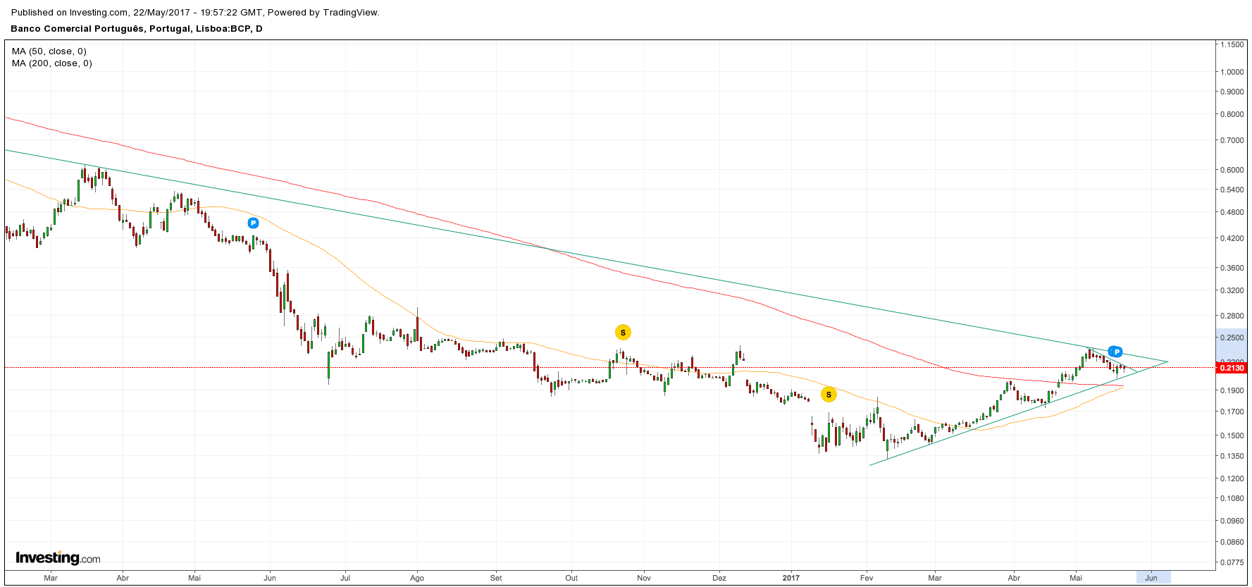 Para já, seria bom furar de vez a linha descendente de muito curto prazo de 8 de Maio, passando os 0,2151.