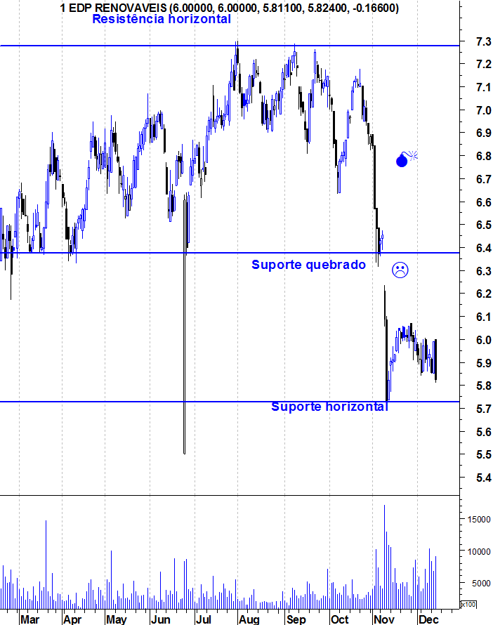Correcção muito forte na EDPR, mas penso que só haverá motivo para considerar inversão de tendência se tivermos fecho semanal abaixo dos 5,63€, suporte muito importante.