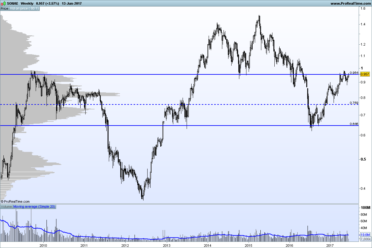 Está em zona de forte resistência e não me parece ainda provável que neste movimento consiga ir acima de 1 euro.
