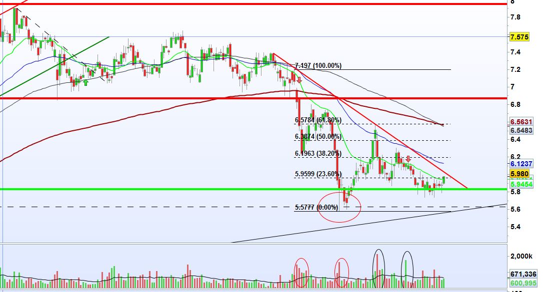 Estou convicto que no curto prazo vai descair aproximadamente até ao número redondo (~6) e depois então atacar a resistência.