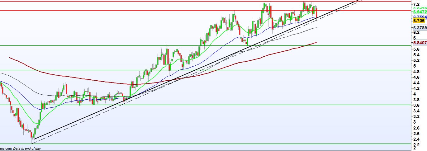 Tecnicamente não há razões para não quebrar os 7,25 e ir visitar valores em torno dos 7,50.