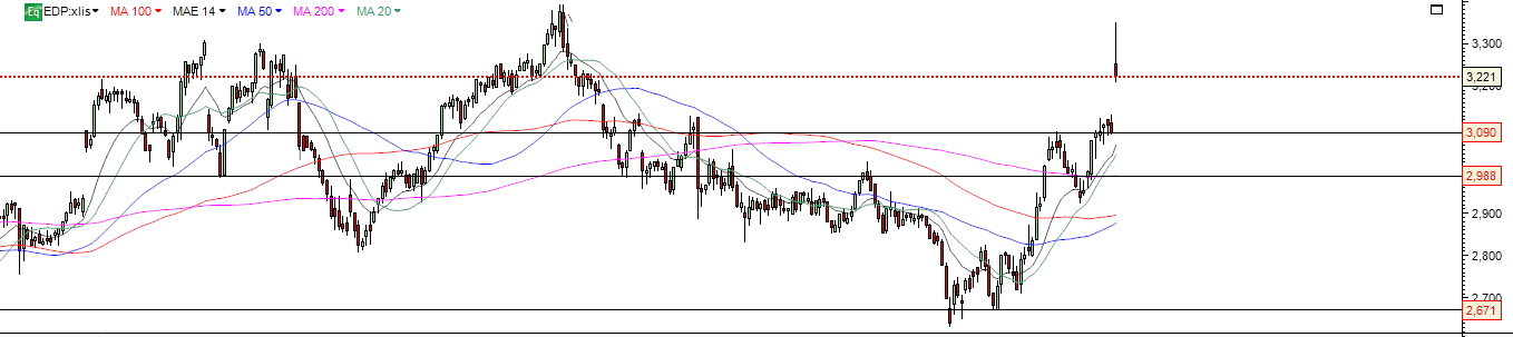 Com a cimeira da energia entre França e a Península Ibérica proposta por Macron para Lisboa(e que este governo anda a fugir cm o diabo foge da cruz-, para se ver quem realmente conduz a politica de energia neste Pais: Estado Chinês!), esta cotada sairá deverás prejudicada, porque perderá parte do seu monopólio natural, logo o mais certo, lá para maio-junho qd for anunciada e realizada a tal cimeira do mercado liberalizado de energia entre França-Península ibérica, esta cotada vai outra vez à base deste canal €2,65.