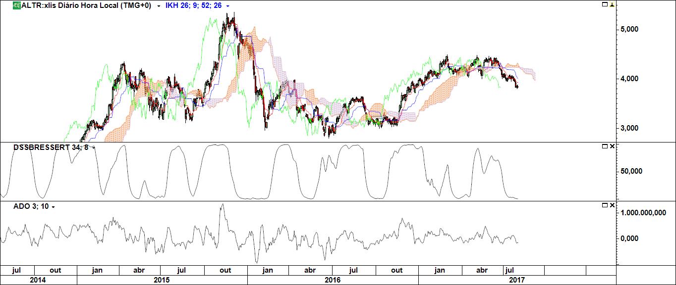 Respeito a posição de quem tem a opinião que o caminho é até aos 3,6€, embora na minha visão não o veja tanto assim, no entanto se esticarmos um pouco mais o gráfico, até agosto ou setembro do ano passado, podemos verificar um possível suporte entre os 3,58/3,63. Esperamos apenas que caso a cotação caia até lá, aguente-se durante algum tempo (preferencialmente até Outubro), onde poderia ganhar fôlego para um bom final de ano (que esperemos igual ao de 4T/2015).
