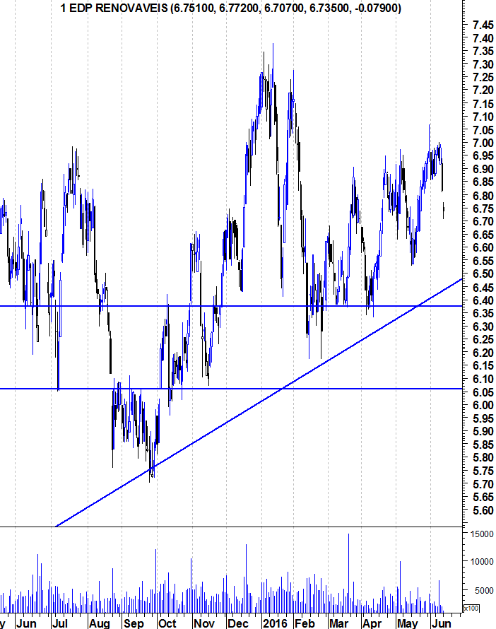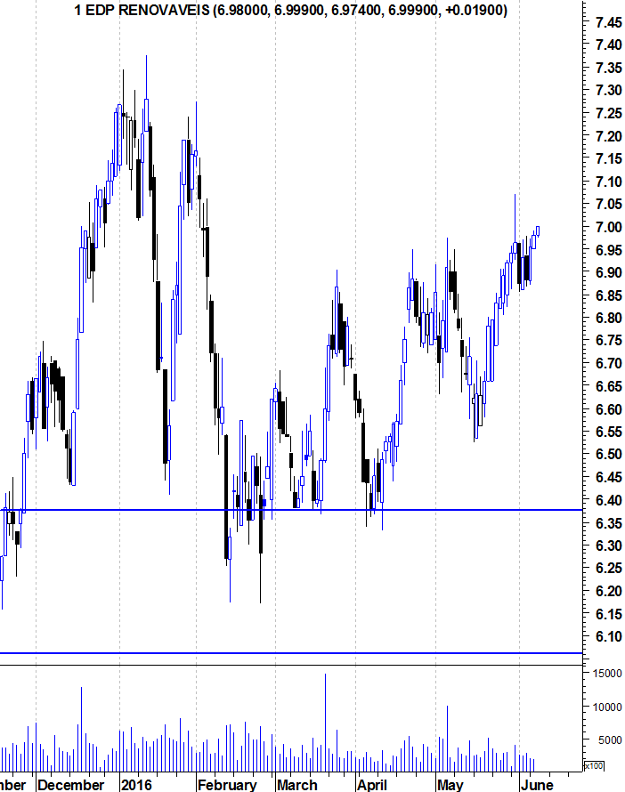 dito isto, a renováveis vive um claro bull market, mas no curto médio prazo continua a esbarrar na resistência que se situa na zona dos 6.9 euros