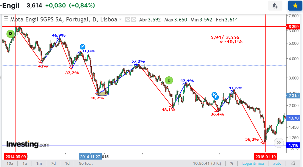 Há uns dias assumi uma posição curta na Mota, e ainda fiz um bom negócio. No entanto, fechei demasiado cedo e deixei de ganhar cerca de 6% das quedas. às vezes preciso de ter um pouco mais de paciência, e saber esperar.