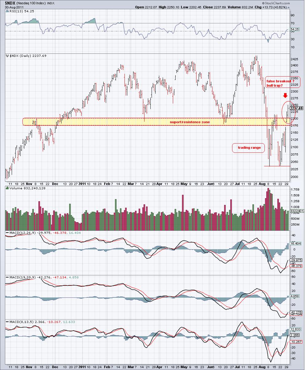 Vejo uma importante resistência nos 2190 (que já actuou em Novembro de 2010 e depois serviu de suporte em Março e Junho deste ano.