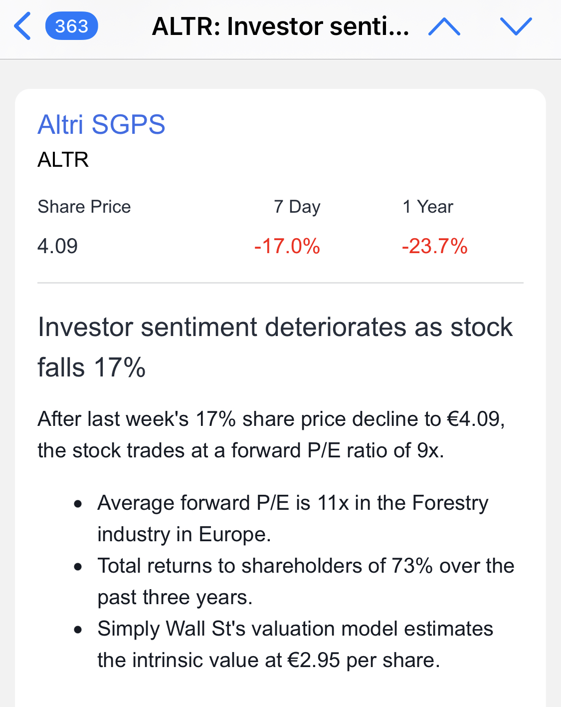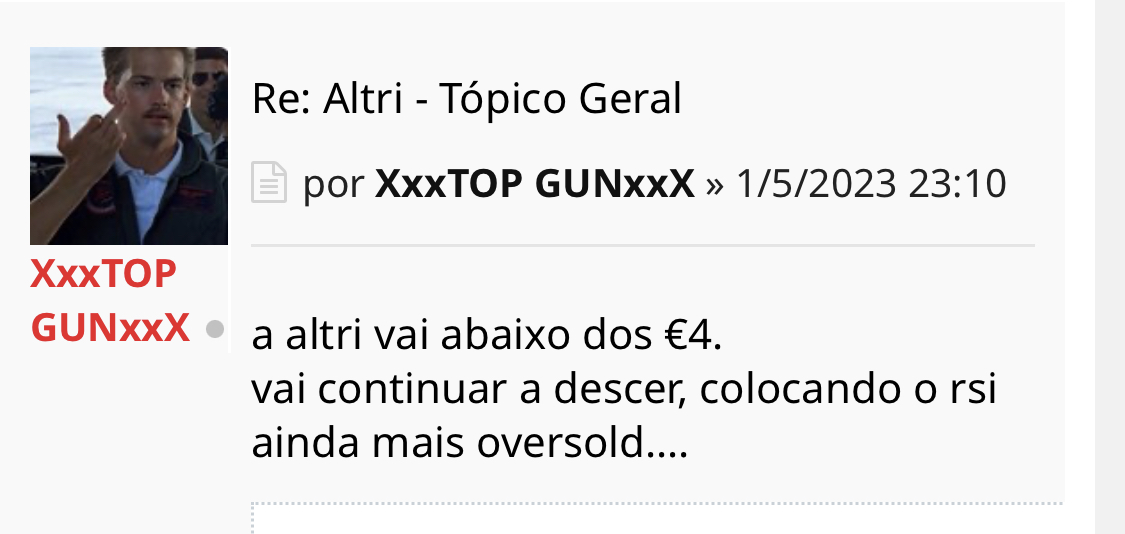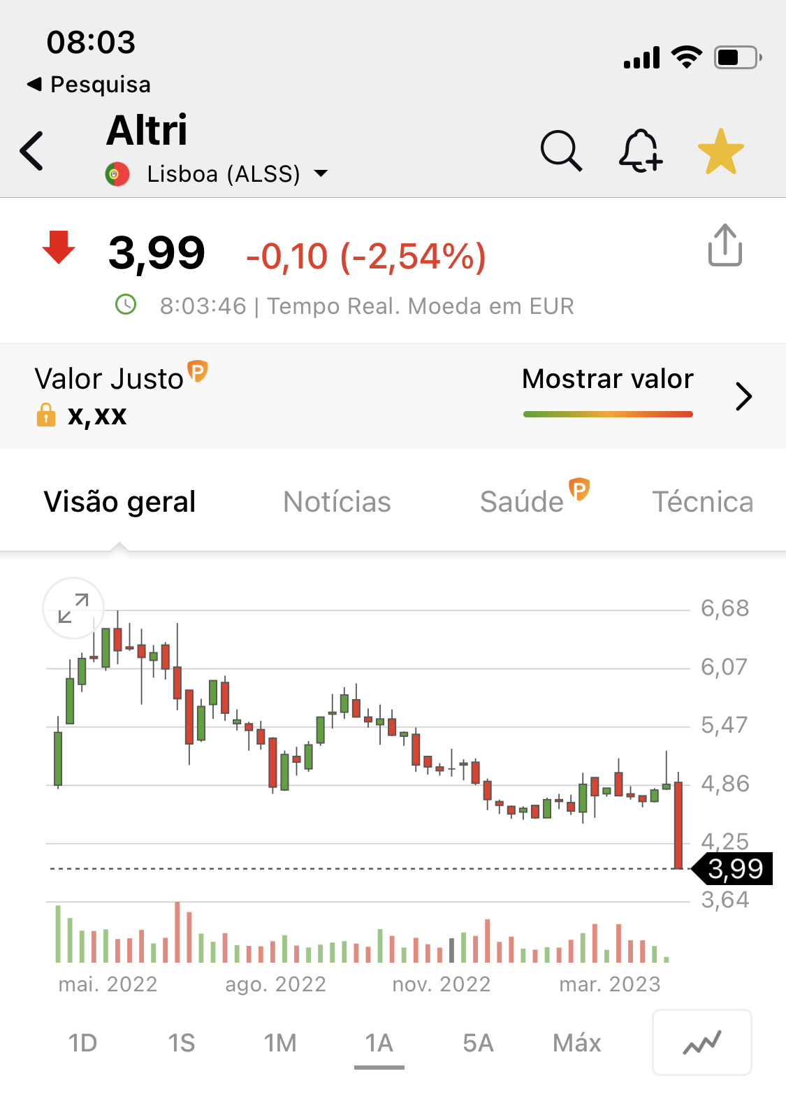 Esquinas3 Escreveu:5640533 Escreveu:Não percebo. Ontem, a Altri fechou em 4,97. Hoje, está, digamos, aos 4,12 e diz-se que sobe perto dos 4%. O dividendo é de 0,25 + qualquer coisa da Greenvolt. Que contas são estas?