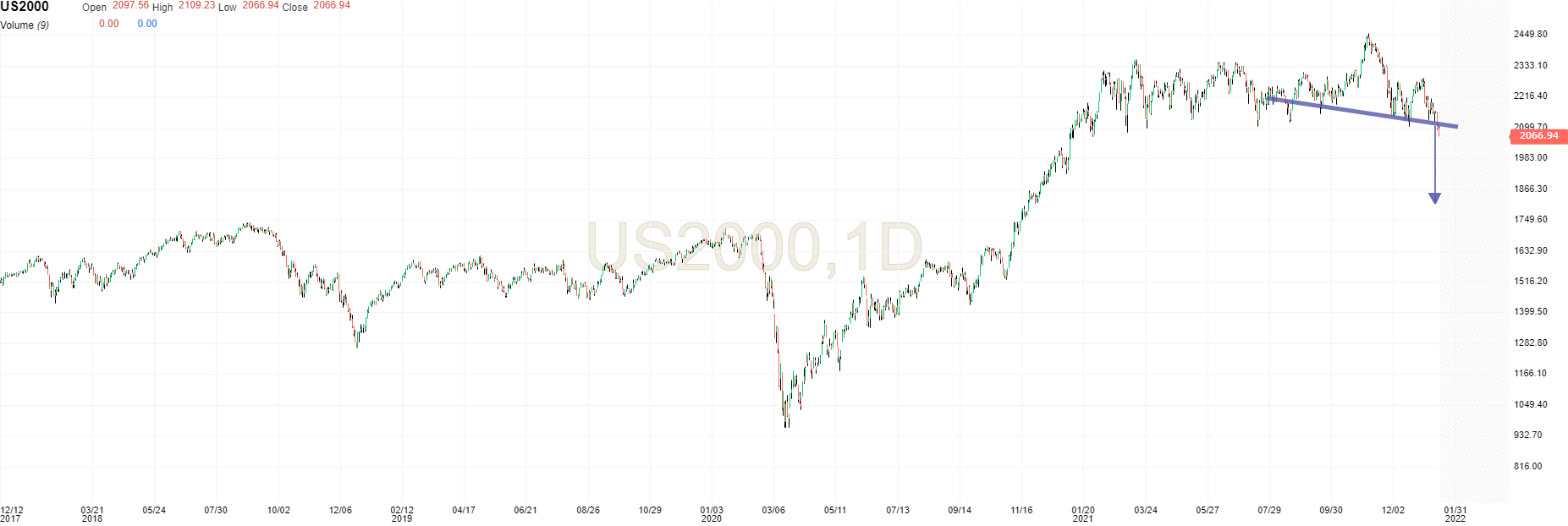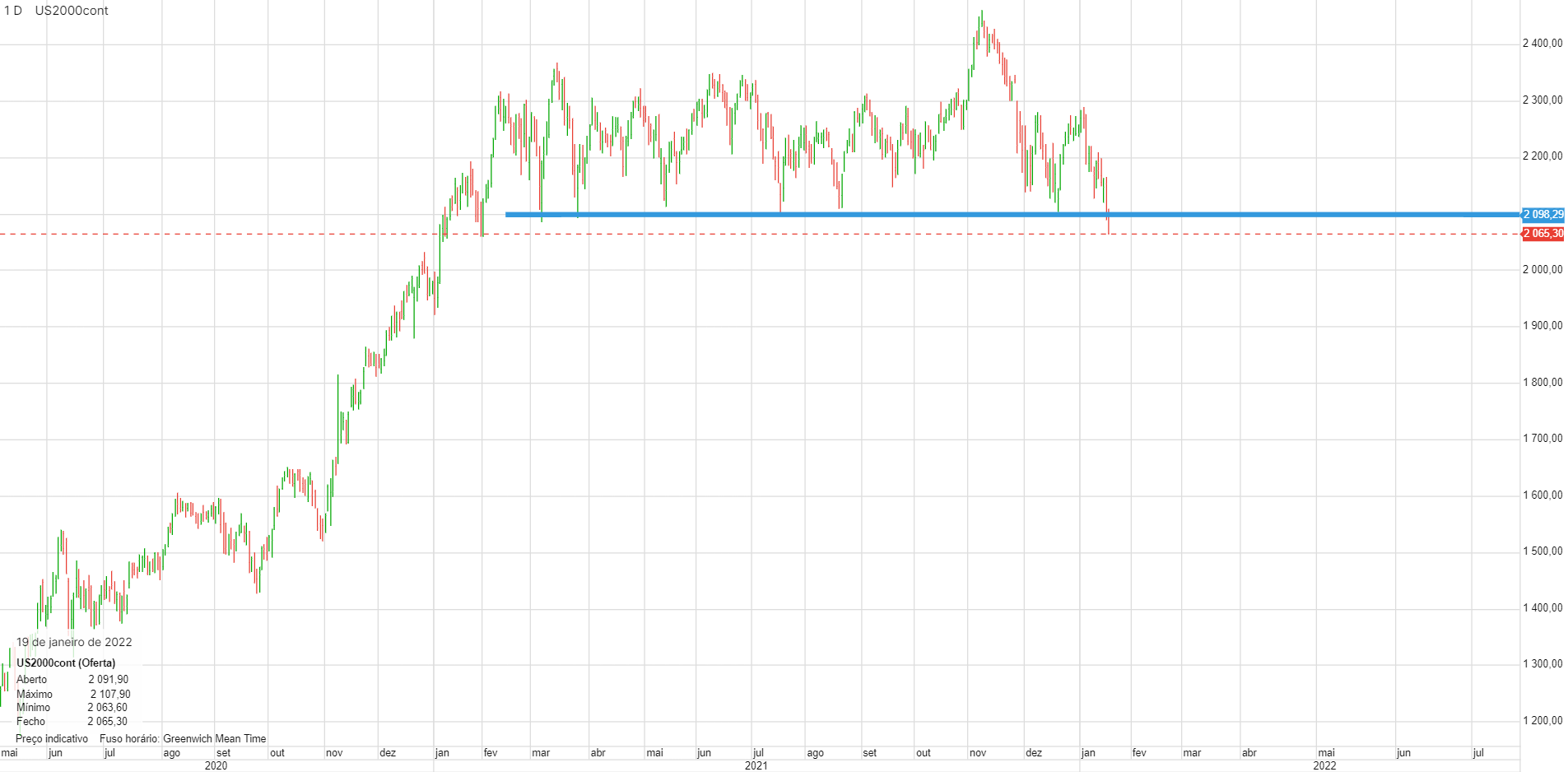 A diferença é de certa forma natural; o R2K está cheio de small caps, tecnologicas p.e., que recorrem ao financiamento para crescer. Quando se fala em subidas de juro agressivas, para conter a expansão inflacionista, as perspectivas de crescimento minguam ... resultado levam mais no lombo que as "big techs" dominantes tipo MSFT, Apple, Meta, Google etc que não têm claramente esse tipo de problemas.