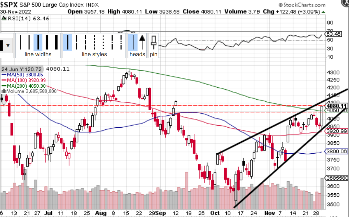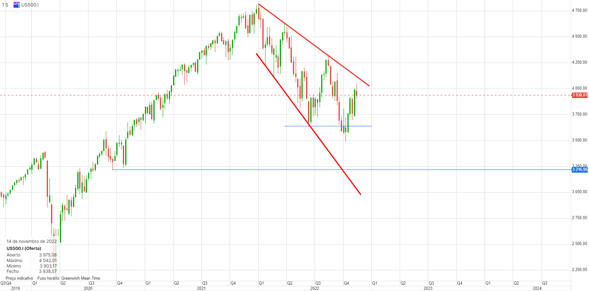 fbolsa, dependerá muito da inflação... mas é posível ir mais além, não vejo que seja dif´cil o SPx ir acima 4100 pontos para confirmar a subida. Até porque a bolsa no final do ano tende para subida, sendo que aqui será continuar movimento iniciado há 2 meses. Acima de 4100, aí sim, aí poderei dar uma bicada à urso. Mas até lá, nem pensar. Também não vejo o suporte tão baixo, diria que 3900 pontos poderão segurar o índice.