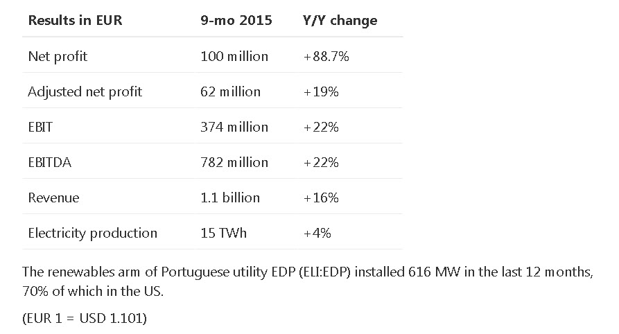 RESULTADOS DA EDPR NO 3.º TRIM 2015