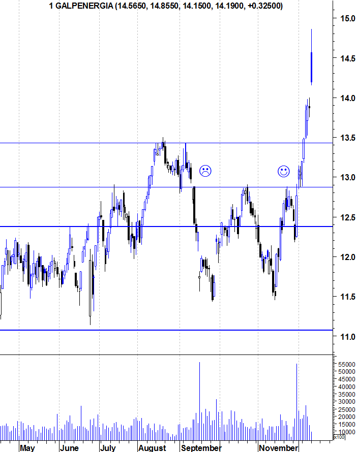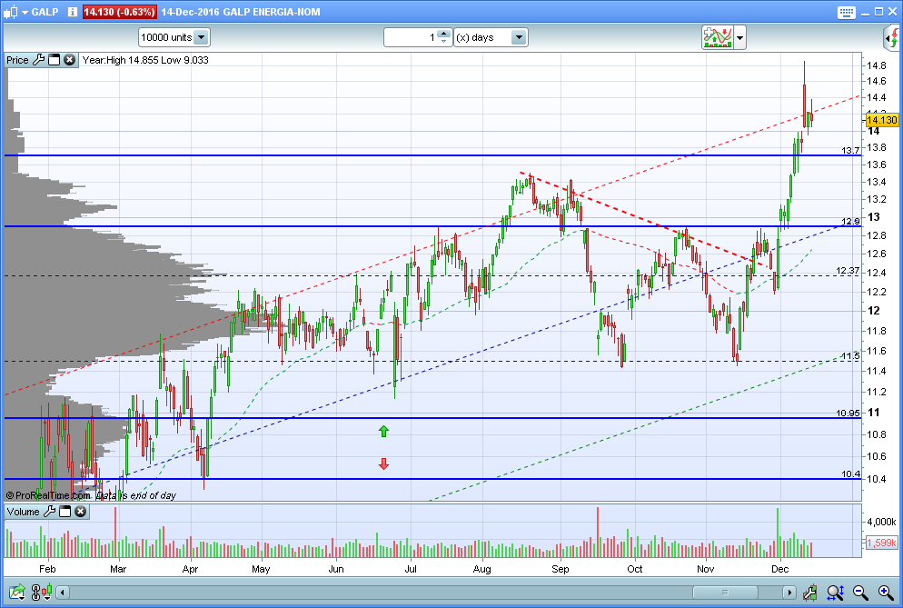 De facto hoje confirmou-se que a Galp continua em modo bull; a vida não está nada fácil para aqueles que querem entrar a 13€.
