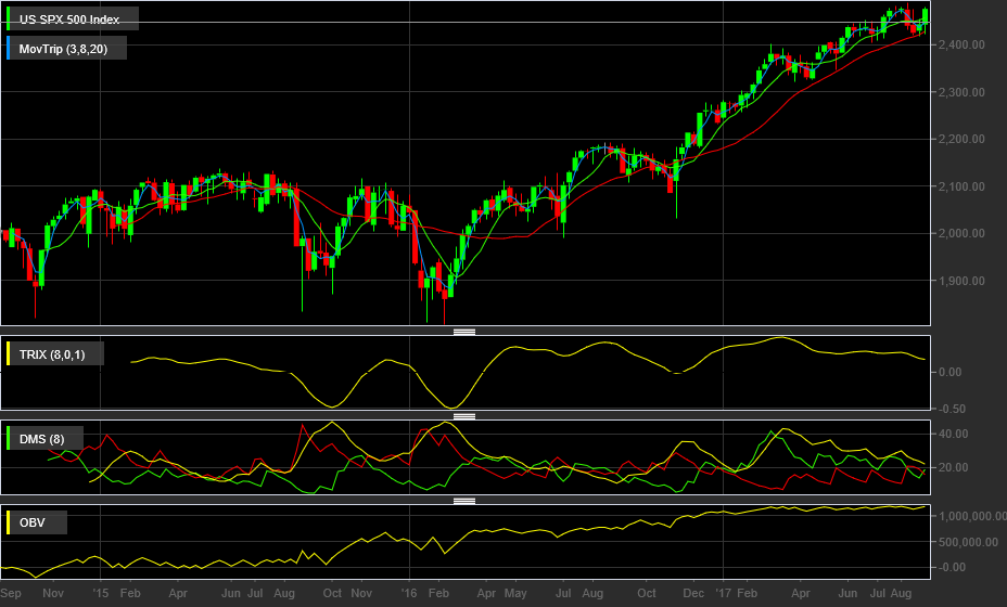"Fact is, market participation via the S&P 500 has been dwindling since June in a negative divergence to the rising prices into fresh records—and again, in contrast to the late August rise which reached less than half of one percent from the August 9th all-time-high. Additionally, should the current risk-off sentiment drag equities down another 2 percent, a major reversal—both a H&S top and crossing below the uptrend line since February 2016—will have taken place with another 10-percent decline implication."