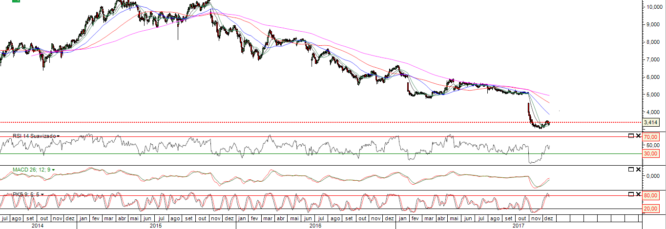 E titulo ainda só fez uma pequena recuperação de uma ENORME queda mas ainda não deu sinais de inversão .