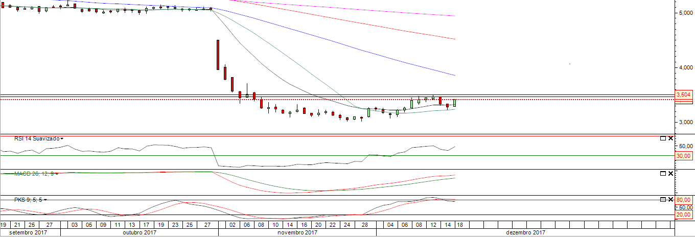 Caso passe a zona dos 3.50 poderá mesmo haver uma viagem brusca para Norte dado a elevada percentagem de posições curtas. Será que os CTT se guardaram para a ponta final do ano para darem gás ao índice?!
