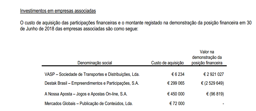 Os 5 Milhões de Lucro / ANo no jogo , são só um sonho pois nada disso está refletido nos resultados e o 1ºSEM de 2018 já incorpora a parceria de 40% que detem na parceria do jogo .