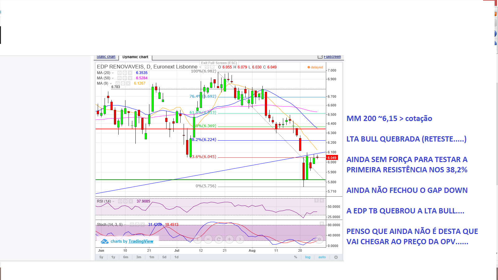 Pikota, esta semana ainda ando aqui sem gráficos por questões técnicas. Mas eu diria que, apesar da quebra dos 6,1/6,2 não ter sido um bom sinal, é importante que a zona de suporte entre os 5,7 e 5,8 aguente.