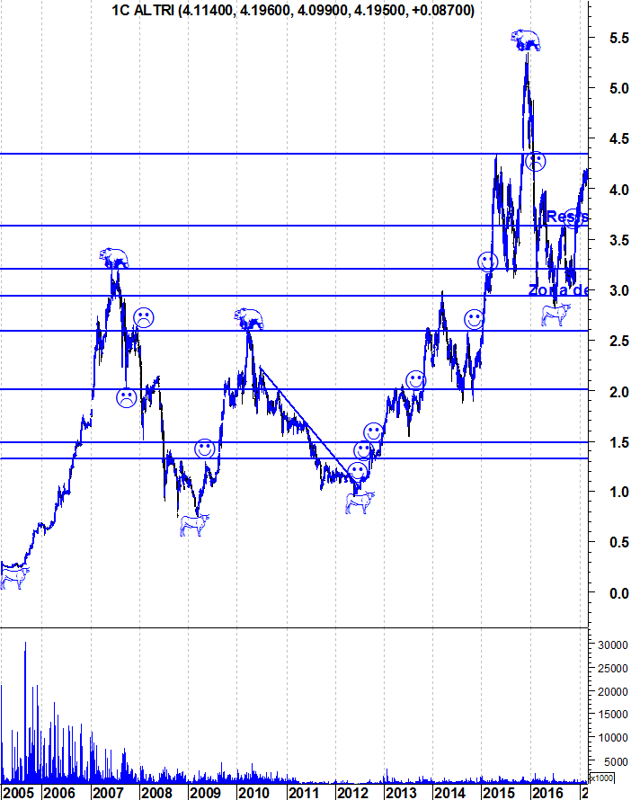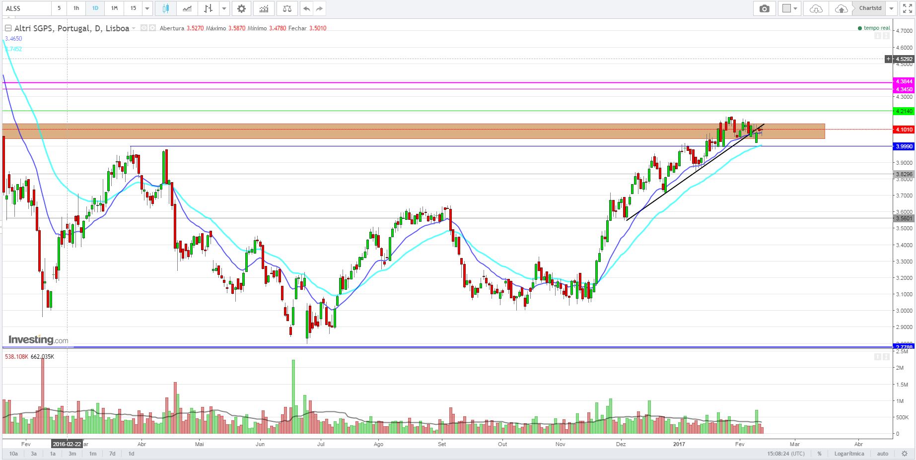 Tendo em conta que aqueles 2 traços horizontais são um suporte da acção, será que a zona 4,15€-4,30€ poderá ser uma resistÊncia forte ou nem tanto?