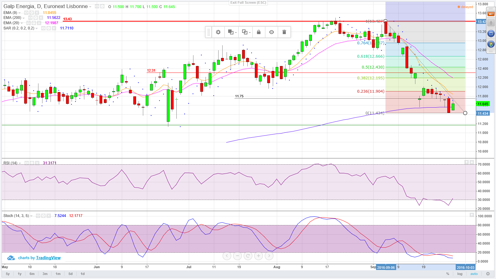 Hoje, tive pouco tempo para acompanhar os mercados mas, pelo que já deu para ver tivemos mais uma grande recuperação da GALP depois de nas primeiras horas da manhã ter atingido valores próximos dos 11,55. Com a forte recuperação da cotação do BRENT acredito que a recuperação continuará nos próximos dias e em breve atingir ao 12€,