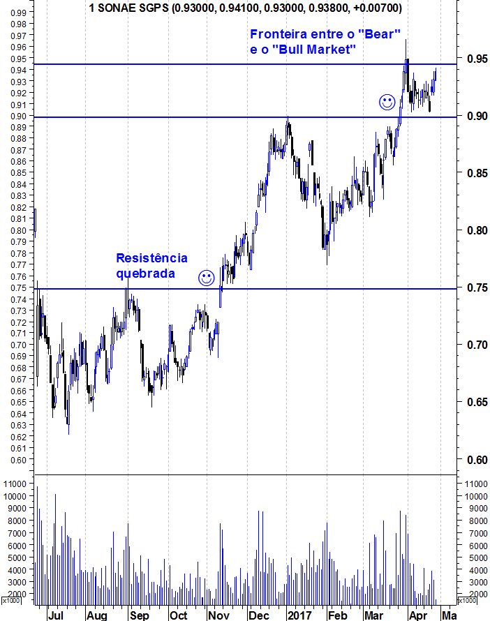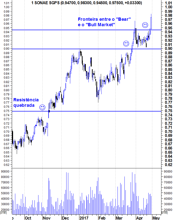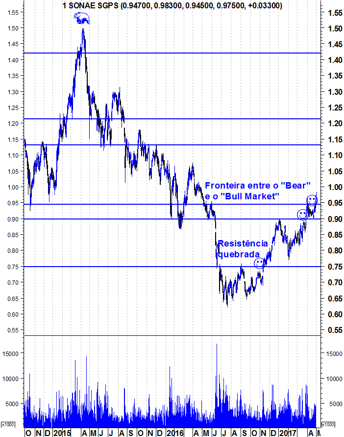 Parece ser hoje que a SONAE rompe finalmente a resistência: para já, excelente volume.