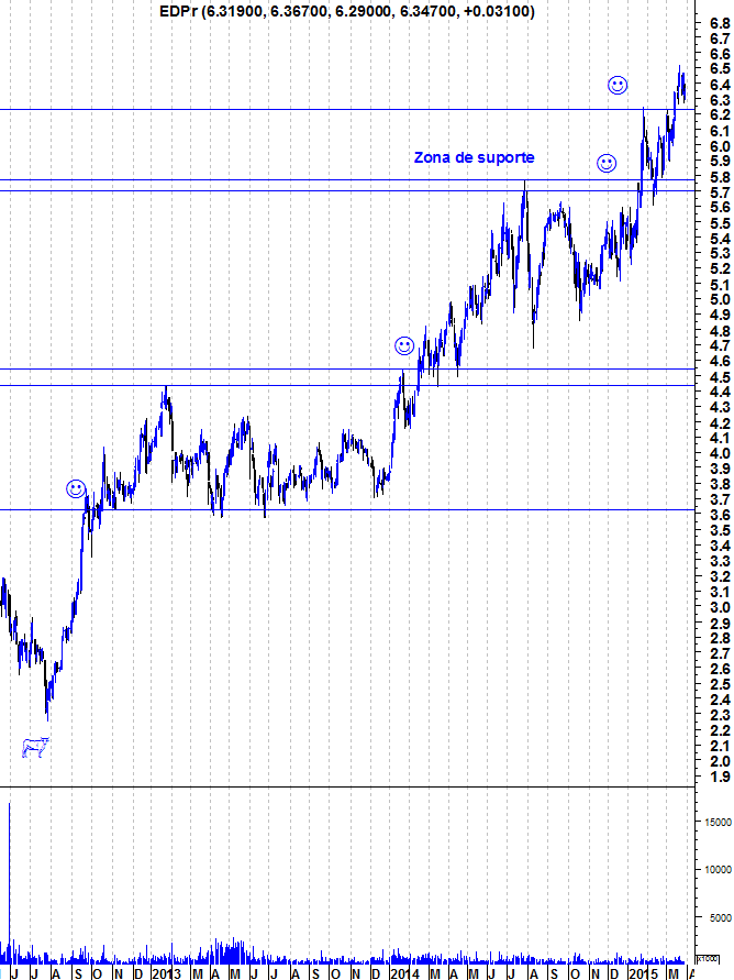 Penso que pelo gráfico do Ulisses tinha uma resistencia por volta dos 6,35, que foi quebrada e agora passa a supporte.