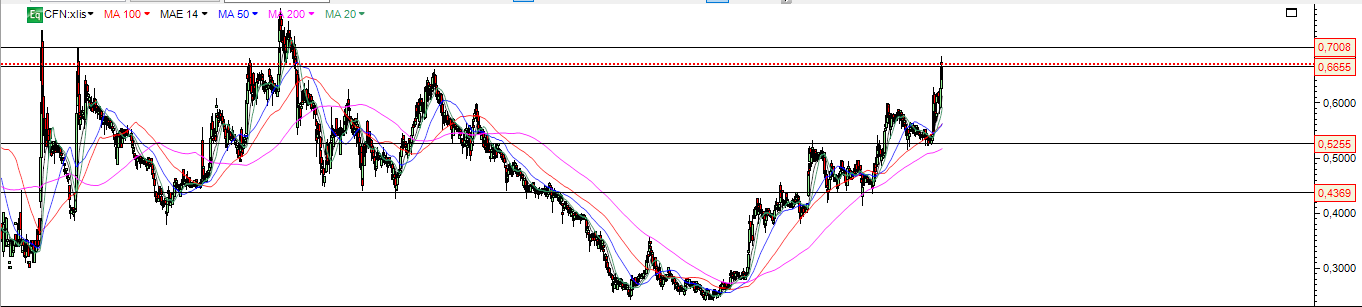 Eu acho esta correcção absolutamente normal, embora ache que poderá fechar bem verdinha. São movimentos com pouca liquidez o que leva a esta flutuação. Se conseguir fazer alguns fechos acima dos 0,70 será um sinal de grande força bull que poderá levar a acção acima de 1 euro.