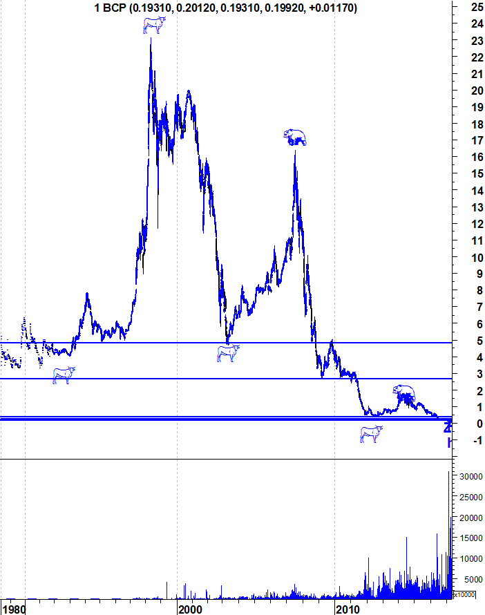 Os touros vão ao volante do BCP...a ver se consegue manter-se acima dos 0.20