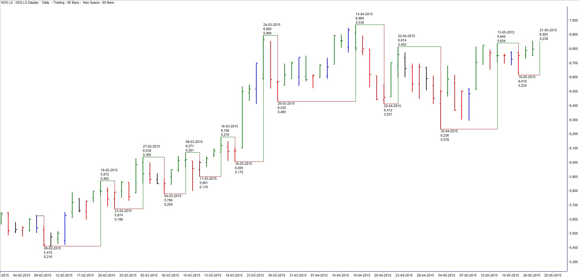 Desta vez parece que a Nos aproveitou o clima de positivismo para dar continuidade ao seu bull market, rompendo os 7 que andava a namorar há algum tempo.. Aguarda-se confirmação e esperemos que a Grécia dê o empurrãozinho final. Que acham deste movimento? Qual a projeção?