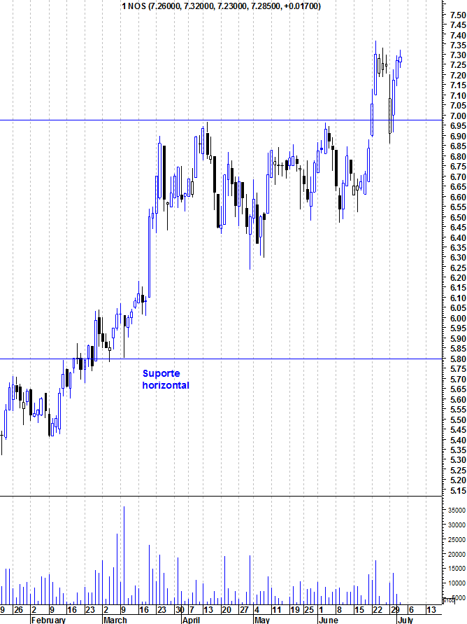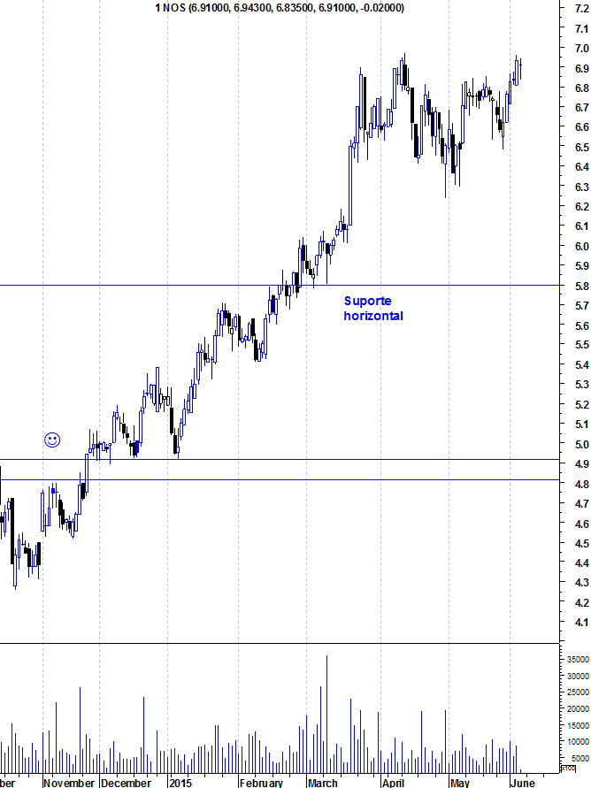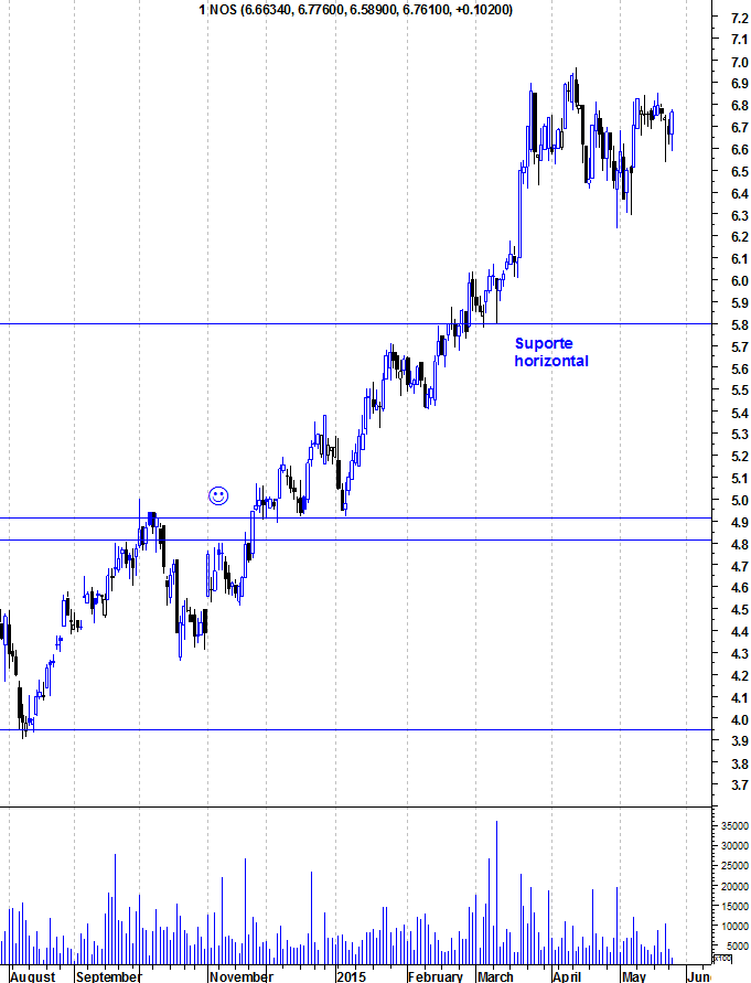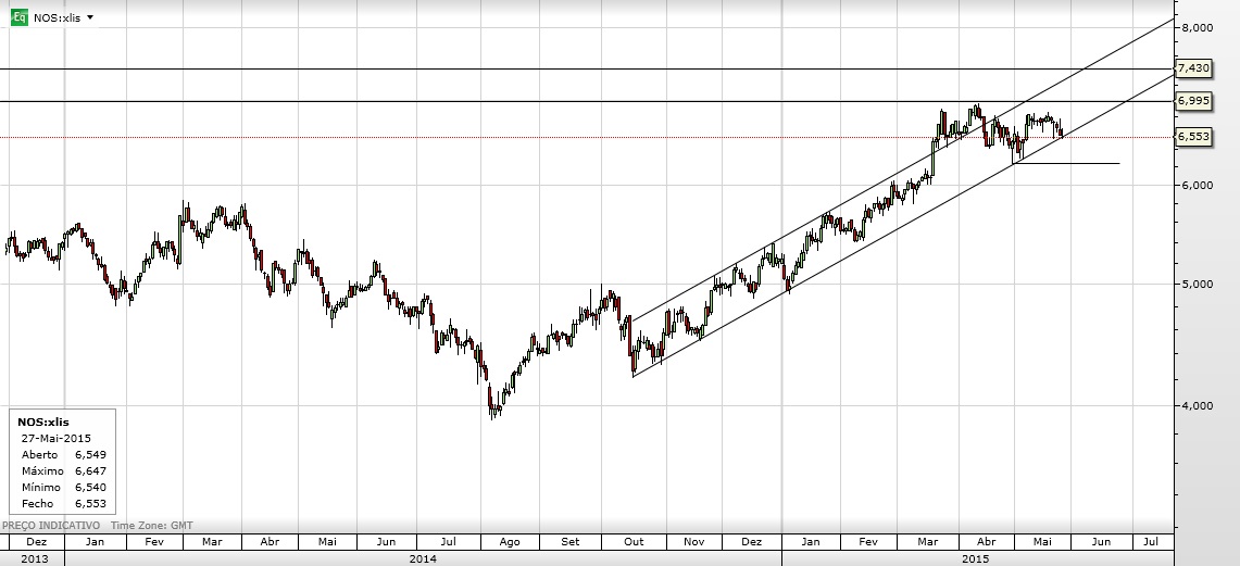 A NOS está em a tocar a base do canal que tem servido de impulso ascendente nos últimos meses.