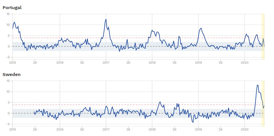 E ai sim, finalmente ("para já"), concluir que afinal como já foi demonstrado, a Suécia em relação a Portugal, tem uma mortalidade de 3 vezes mais.Espero que agora fique esclarecido.
