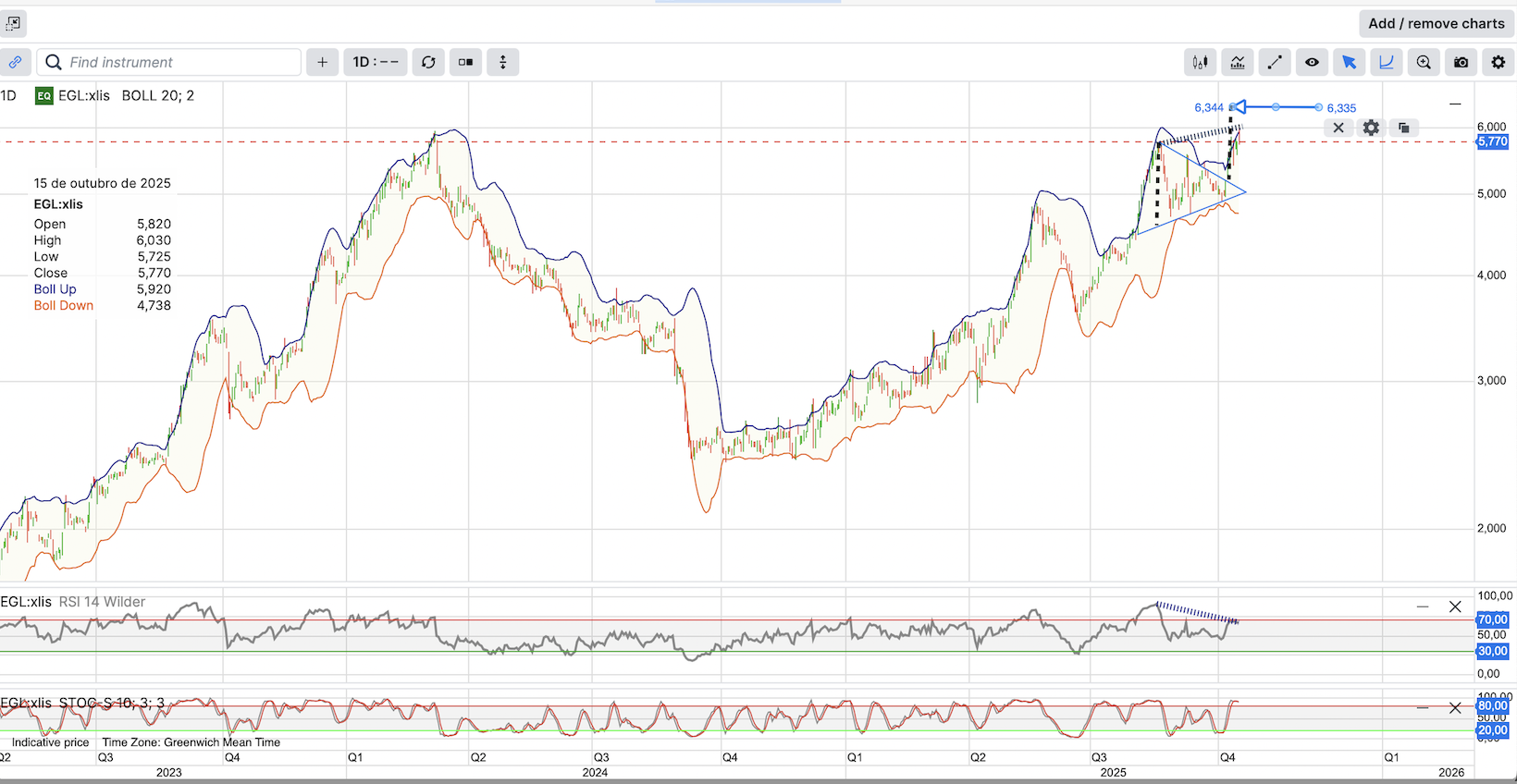 Dada a especulação em torno da apresentação do novo plano estratégico até 2030 (que será apresentado no primeiro trimestre de 2026), diria que a Mota, muito provavelmente, e aí sim atendendo ao comportamento histórico da ação quando há um "hype" grande em torno do seu futuro, sobe aos 9€ no primeiro semestre do ano que vem... este sim é um "achismo" meu, fundamentado em observações circunstanciais dos gráficos (também tenho direito ao meu bitaite).