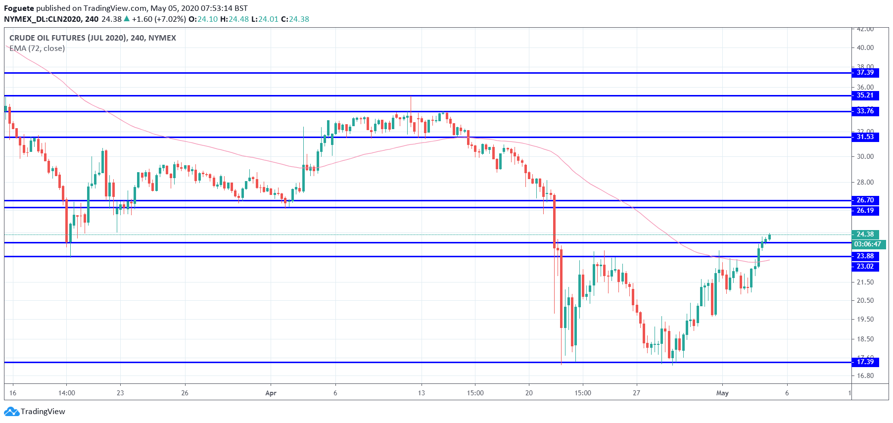 Trocar o longo de 2MF Agosto pelo de 7MF Dezembro porque o Gap/contango está agora excessivamente reduzido. IMHO, Dezembro devia projetar valor de $42 BDP e não os $31,80 atuais do CF, projetando um valor de mercado baixo para a recuperação macro Mundial - com menos produção apriori para 2ºsem., vis a vis 2019, face aos fechos de explorações offshore da Chevron, Oxy, Exxon, BP e falências de shale oils.