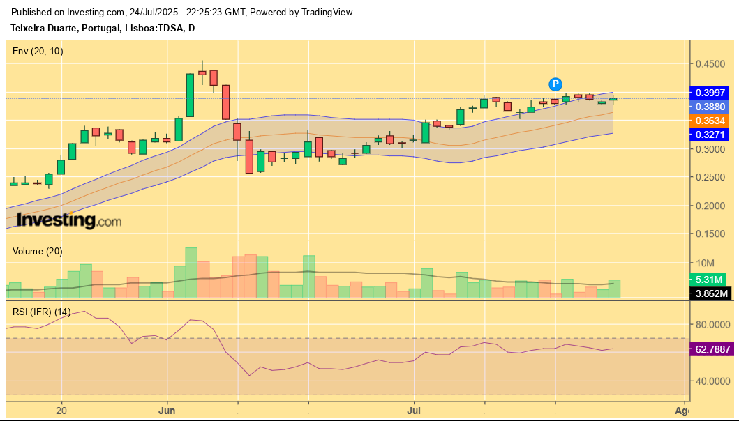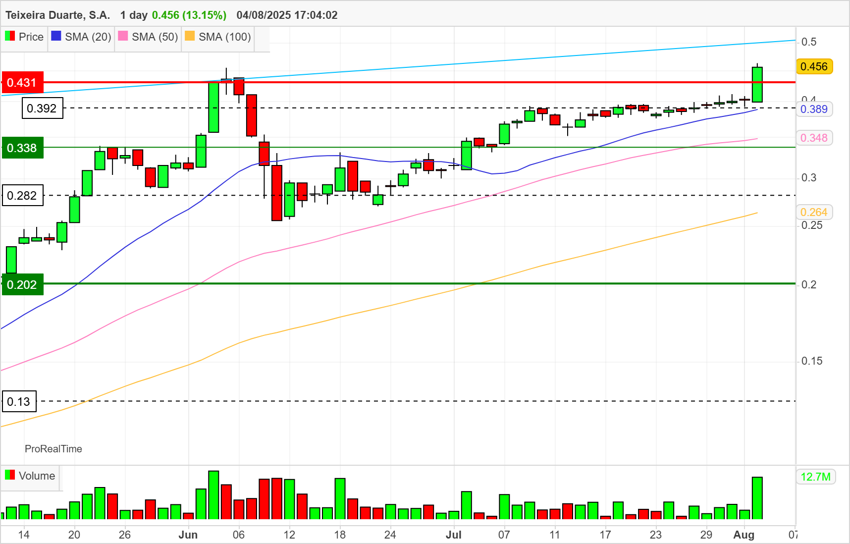 Maior movimento diário de sempre na Teixeira Duarte ,15 576 903 ações trocaram de mãos.