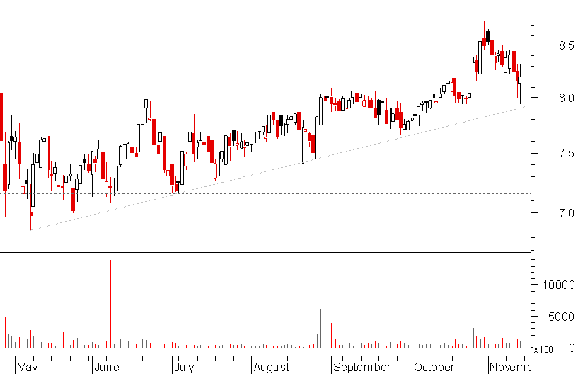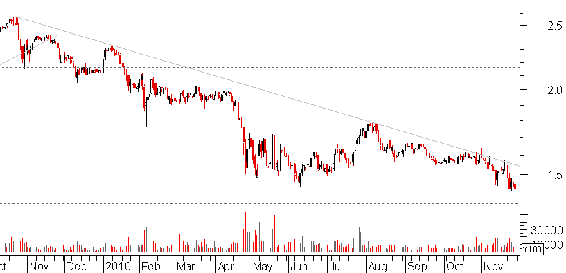 aliás, se virmos esta cotada mais de longe apercebemo-nos de uma consolidação prolongada que, com boa vontade, se parece com um triângulo descendente