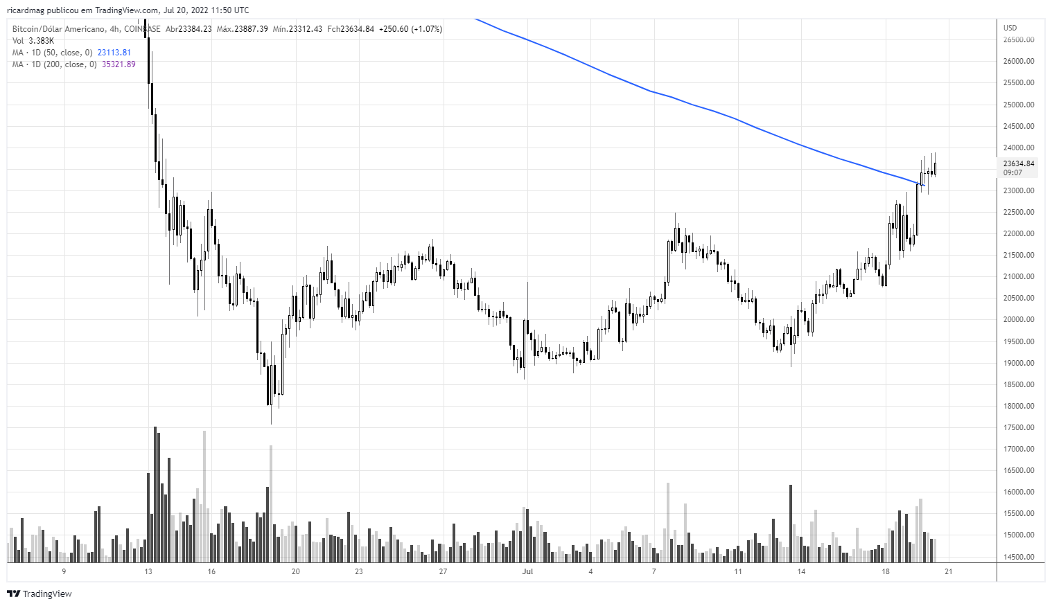 Já desde abril que não se via o preço acima da média de 50 dias