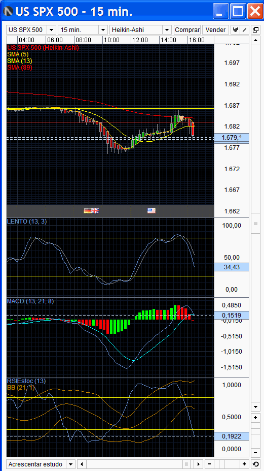 Como eu suspeitava, o fecho diário abaixo dos 1687, levou a mais quedas nos futuros, mas nada está perdido ainda neste trend.