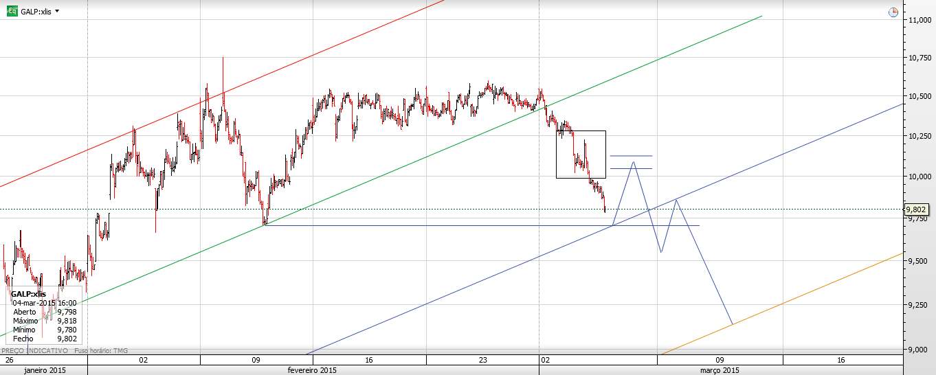 Depois de ter estado a lateralizar e a acumular durante duas semanas a Galp cai, e quando todos estão à espera do ressalto dos 9.70, não poderá a cotação avançar para sul novamente? Veremos...