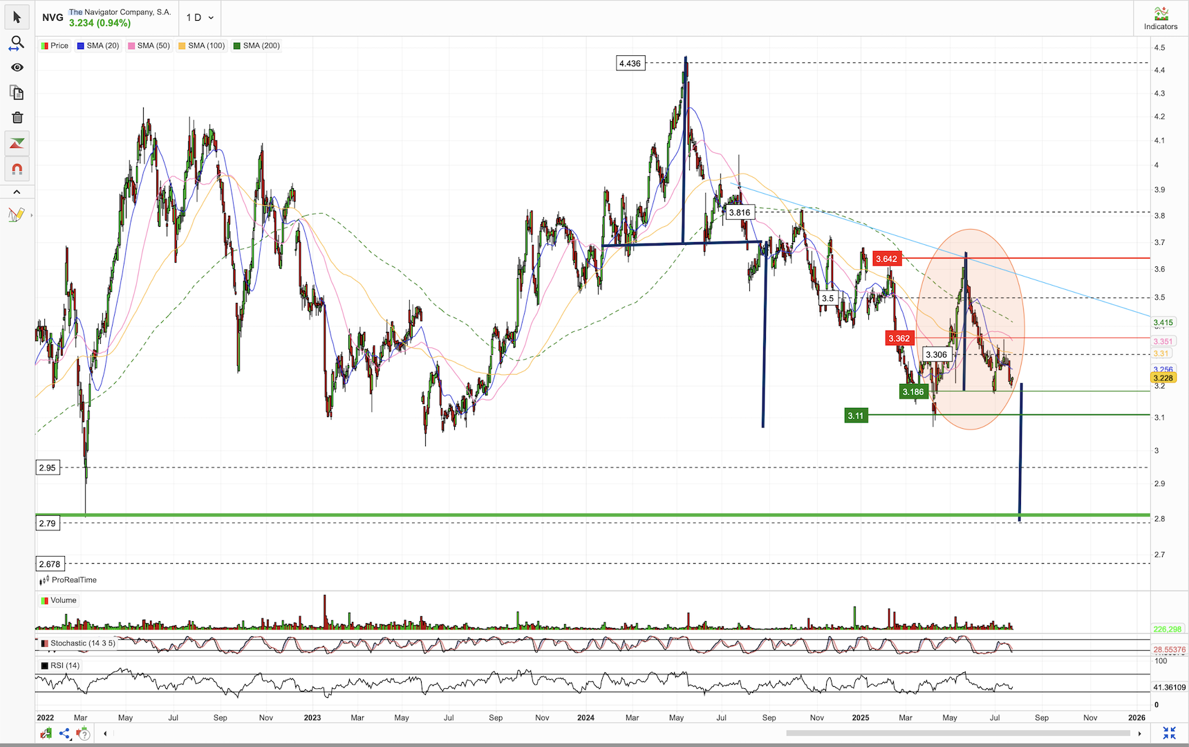 Acredito que venha testar a região dos 3,214 e aí sim, acumular na zona de liquidez para subir...