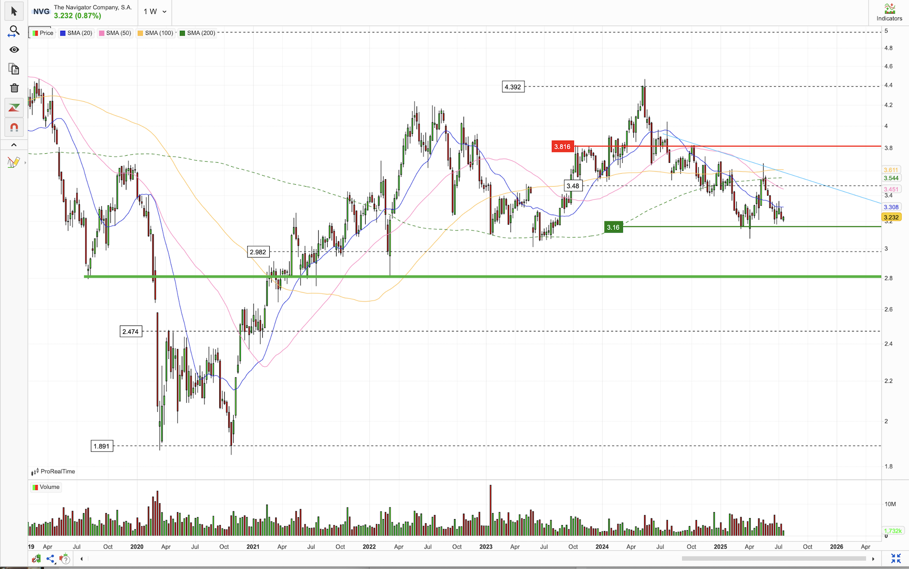 Está num valor interessante. Creio que os resultados do 2º trimestre serão maus dado euro-dolar + preço da pasta em baixa + aumento de stocks no mercado americano. Há também toda a discussão em torno das tarifas UE-EUA que começam a afetar os mercados europeus à medida que nos aproximamos do deadline.