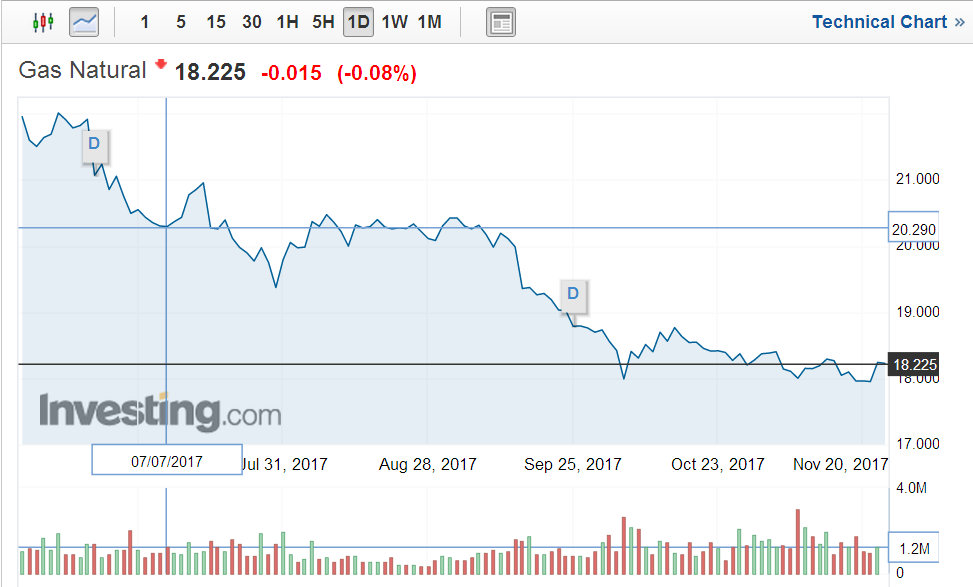 «Gas Natural, muy cerca ya del importante soporte de los 17,85 euros