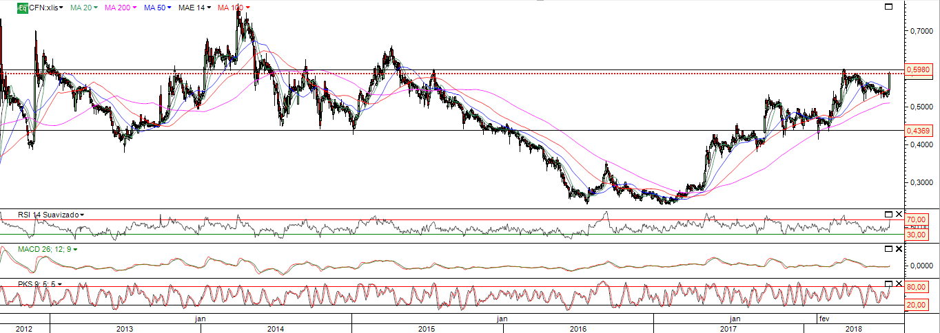 Não faço ideia se irá passar os 0.60 prá semana. Msm q passe nao ficarei triste. Tb nao sei se irá fazer correções. Caso aconteça, vou pa dentro outra vez. Estou com alguns foristas q acreditam q até ao fim do ano fará mais valorizações do género.