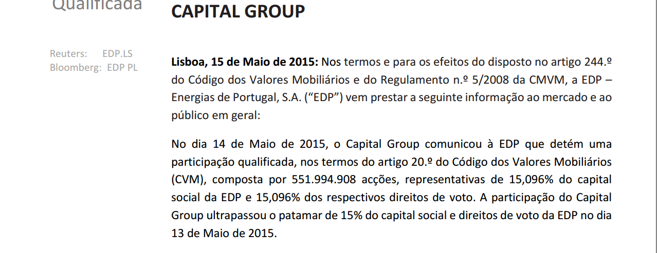 Se estes dados estiverem corretos , poderá ter existido uma diminuição da participação do 2º maior acionista da EDP.
