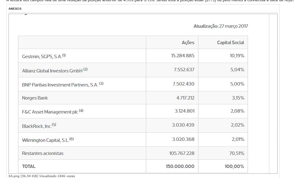 Para mim é mais importante os 1.5% da ALLIANZ ainda por vender ( MUITAS ACÇÕES ) , e os 6% de curtos , e a administração não dizer RIGOROSAMENTE NADA para contrariar isto.