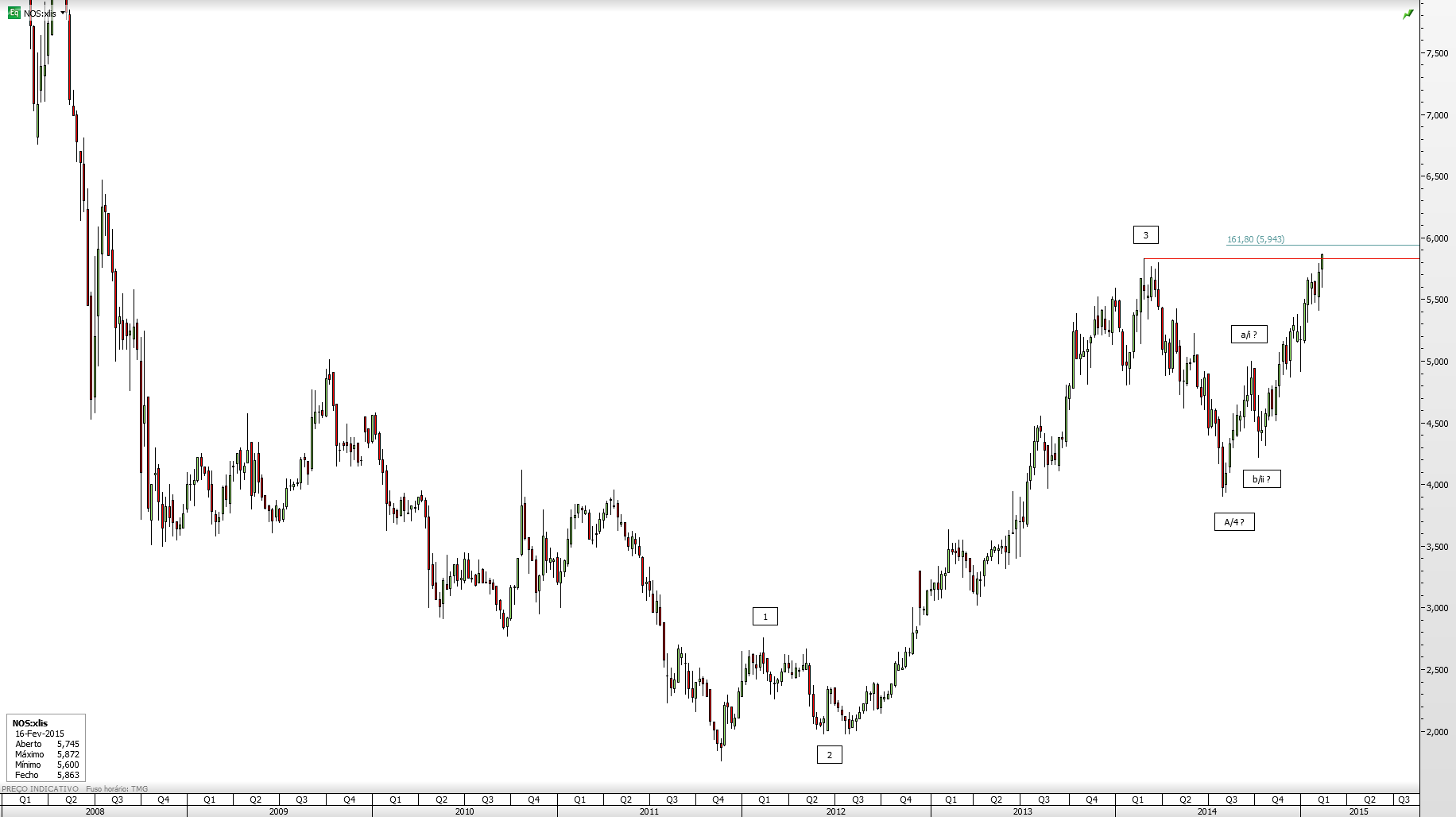 O BES Investimento Research reviu a avaliação da Nos de forma a reflectir os resultados do quarto trimestre de 2014 divulgados esta quarta-feira pela empresa. O BESI subiu o preço-alvo de 7,00 para 7,10 euros. A nova avaliação representa um ganho potencial de 19,9%, face à cotação de fecho desta sexta-feira (5,921 euros).