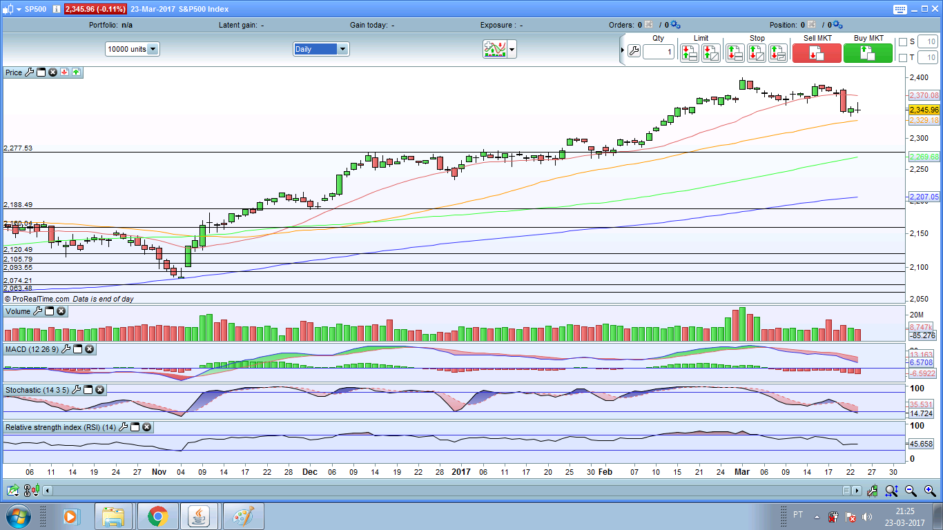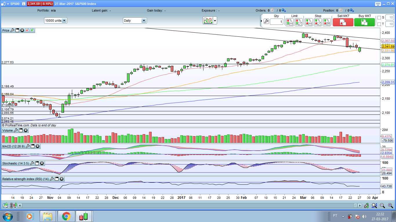 Fechar o dia acima deste valor é crucial para segurar a a queda , um fecho abaixo da MM50 nos 2330, seria um mau sinal e possivelmente poderia prolongar as quedas .