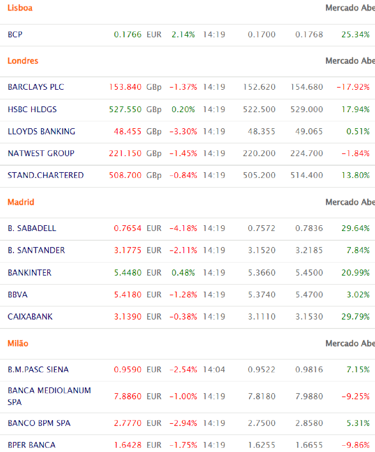 Quando, na sessão de hoje, a banca europeia ( e sobretudo a espanhola ) sobe na generalidade mais de 2% aqui a timidez é enorme. Parece que só não desce com força devido ao facto de lá fora estar bem verde. Parece que se na europa a banca espirrasse aqui era pneumonia certa.