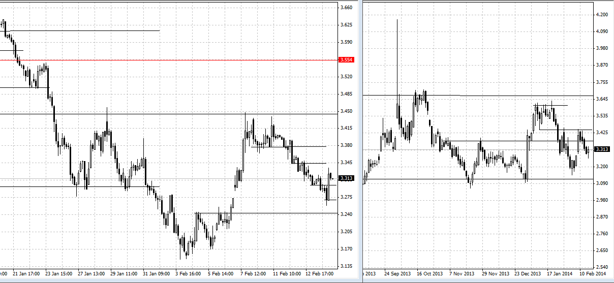 a PT na minha opinião esta descendente de curto prazo,neutral no medio prazo e descendente no longo prazo,veio fechar o gap nos 3,27 vamos ver como vai decorrer desde daqui,é um trade contra a s tendência logo é um trade de risco,para dar certo é bom que não quebre os 3,30 se não pode ainda visitar os mínimos do dia e ate quebra-los,tem resistências de mt curto prazo nos 3,35 e 3,38 s+o passando estas valores convictamente para depois atacar os 3,45.