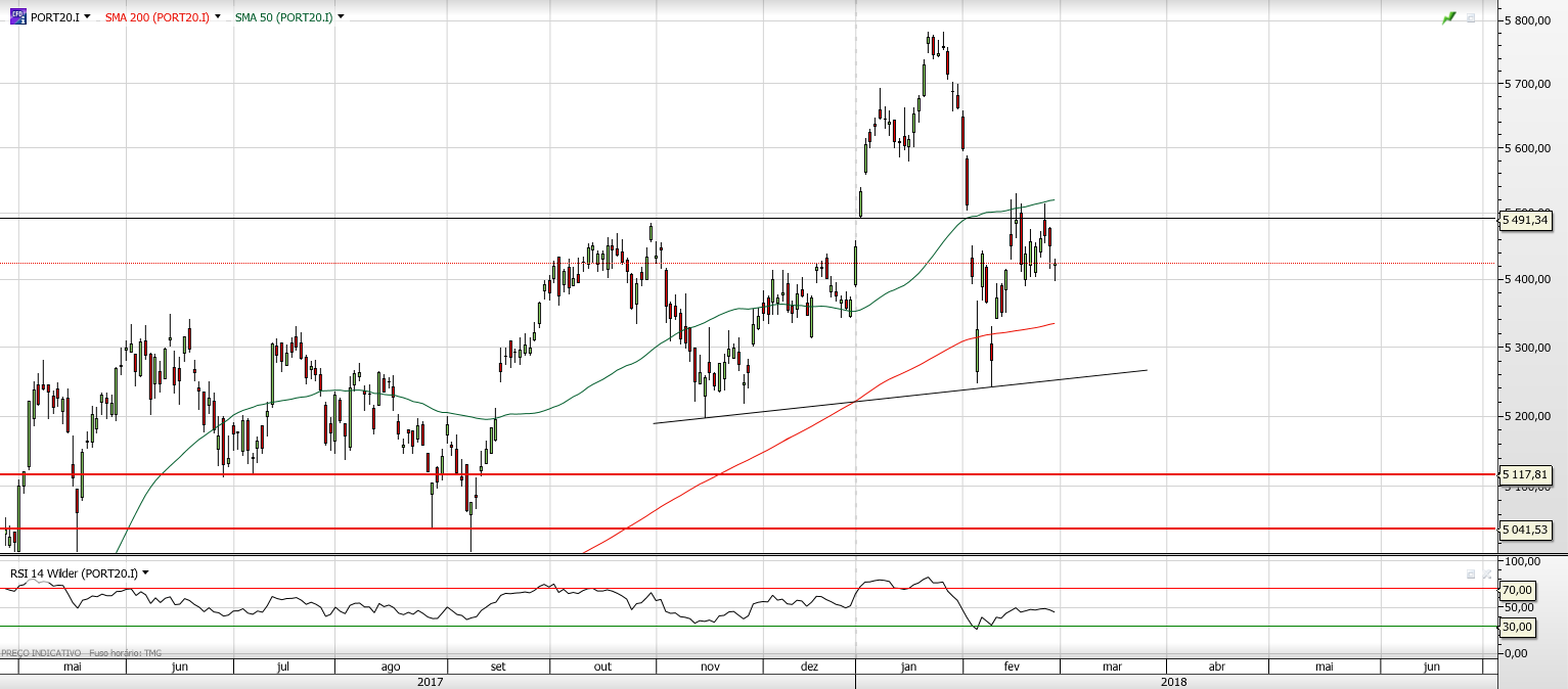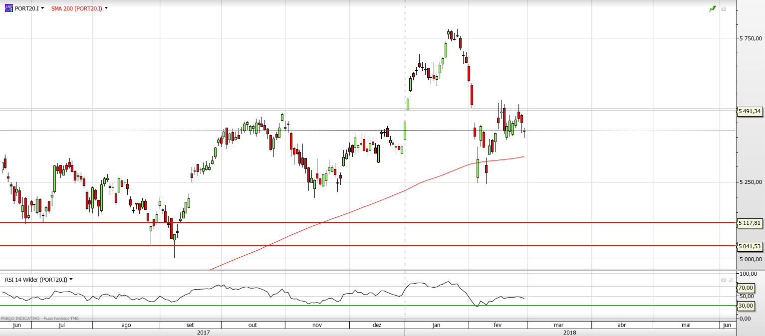 O PSI continua a negociar junto à sua zona de resistência nos 5500 pontos. Os touros continuam a dominar no médio e longo prazo mas, como tenho vindo a referir nas últimas duas semanas, é importante que voltem a quebrar consistentemente esta zona de resistência para que voltem a dominar em todos os horizontes temporais e se abram portas a novas subidas.