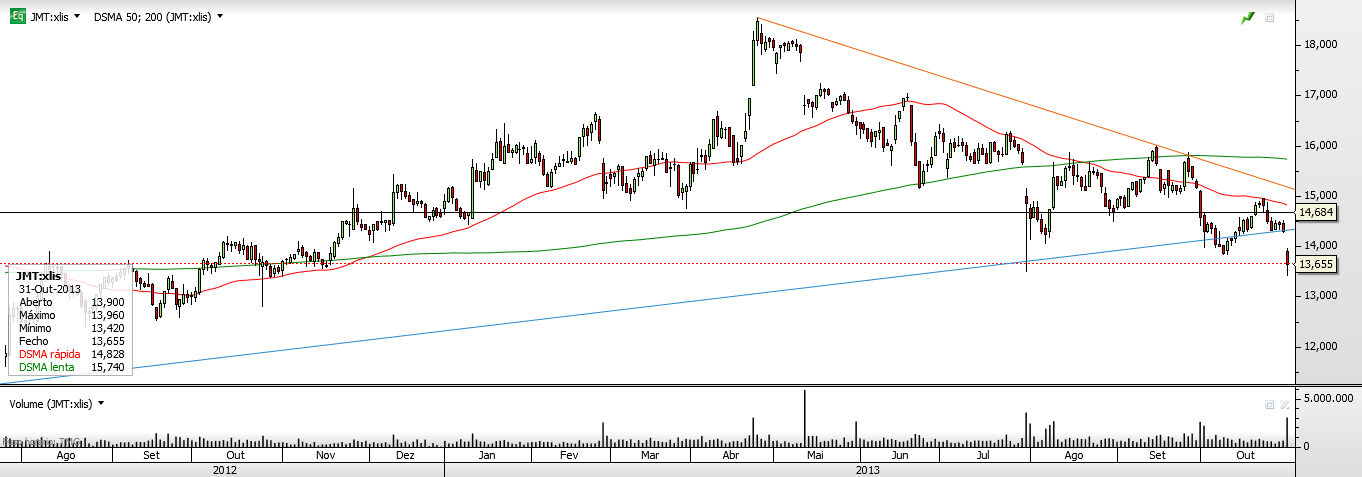 Ontem tivemos liquidez para comprar em minimos e vender em máximos mesmo abaixo da velha LTD nas primeiras horas de negociação, seguido de uma lateralização que me sugere acumulação, acho que os investidores vão aproveitar esta queda para entrar na JM a curto prazo.