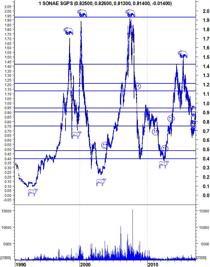 Deixo aqui os gráficos actualizados da Sonae SGPS. Tem uma primeira zona de suporte nos 0,796 e o suporte decisivo na zona dos 0,748.