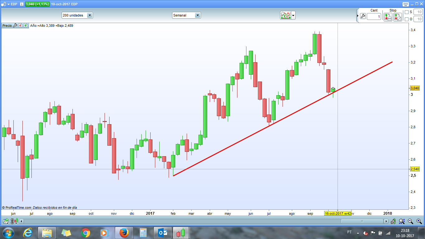 Após ultrapassada esta indefinição e assimilado pelo mercado valores definitivos de penalização dos CMEC e feito um mínimo a definir pelo mercado , poderá ter uma boa recuperação no período 20 Outubro - 2 Novembro dia apresentação resultados .